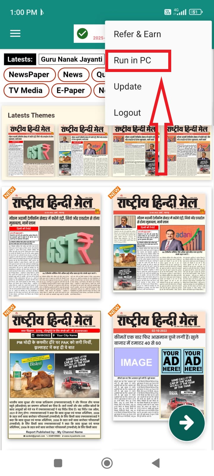 2. Tap or and Select Run in PC